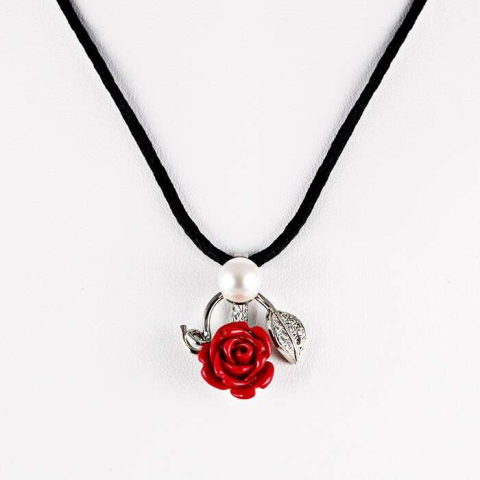 1 kép Ezüst Nyaklánc Vörös Rózsa Medállal