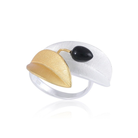 Részletek Ezüst női gyűrű, fehér olajfalevéllel és arannyal. A Ródiumos bevonat, a használattól függően hosszú időn keresztül védi az ezüst Paros gyűrű fényét és szépségét.