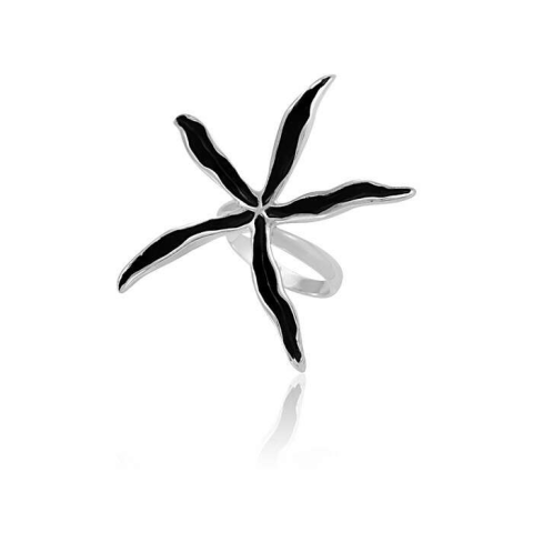 1 kép Ezüst Paros Gyűrű- fekete virág