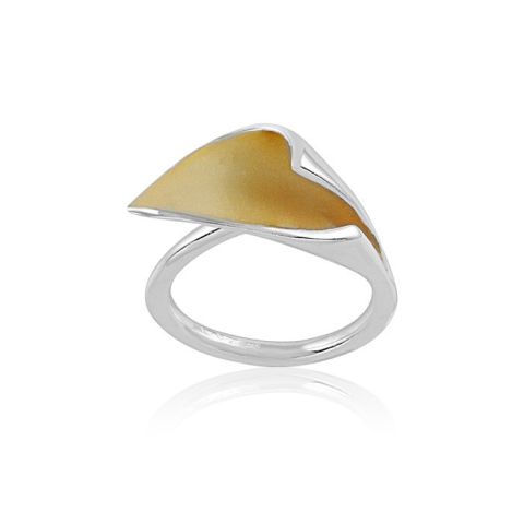 Részletek Egyszerű női ezüst gyűrű, arany tölcsér mintával. Az ezüst Paros gyűrű úgynevezett ródium bevonattal rendelkezik. A Ródium egy ezüstfehér színű rendkívül törékeny fém, amely nem színeződik el hosszú idő alatt sem. Előnyös tulajdonsága továbbá,