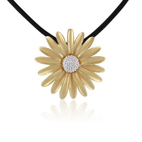 Részletek Ezüst női nyaklánc, arany margaréta medállal és fekete selyem zsinórral. Az ezüst nyaklán úgynevezett ródium bevonattal rendelkezik. A Ródium egy ezüstfehér színű rendkívül törékeny fém, amely nem színeződik el hosszú idő alatt sem. Előnyös tu