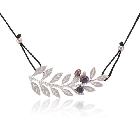 1 kép Ezüst Paros Nyaklánc Olajág Medállal—fekete