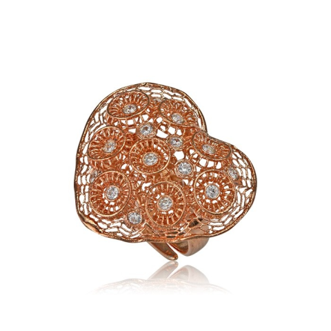 1 kép Ezüst Periklis Gyűrű – áttört csipkés szív kövekkel, rozé színben