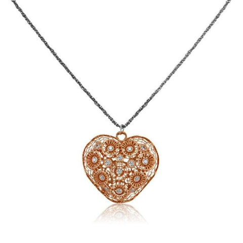1 kép Ezüst Periklis Rosé Nyaklánc Csipke Szív Medállal—kicsi