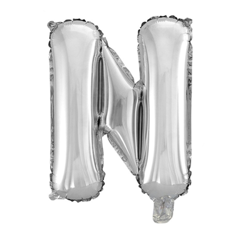 1 kép Ezüst színű, betű alakú fólia lufi, léggömb – N