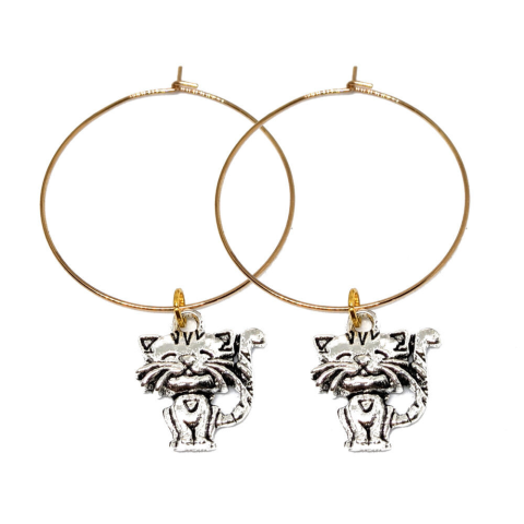 1 kép Ezüst színű Boldog cica díszes karika fülbevaló arany színű karikával