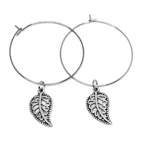 1 kép Ezüst színű Felevél díszes karika fülbevaló