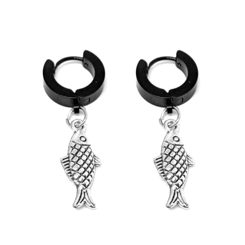 1 kép Ezüst színű Halacska fülbevaló fekete akasztóval