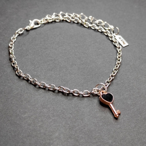 1 kép Ezüst színű karkötő fekete tűzzománc kulcs charmmal