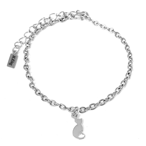1 kép Ezüst színű karkötő nemesacél cicás charmmal