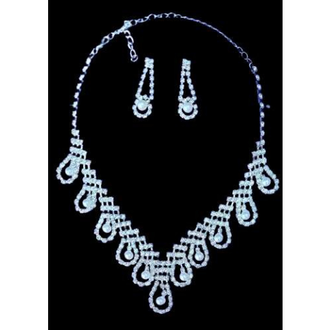Ezüst színű, kristály strassz gyöngyös nyaklánc fülbevaló szett esküvőre