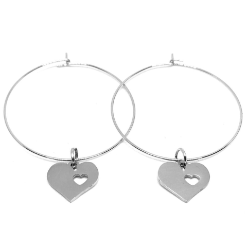 1 kép Ezüst színű nemesacél áttört szív karika fülbevaló