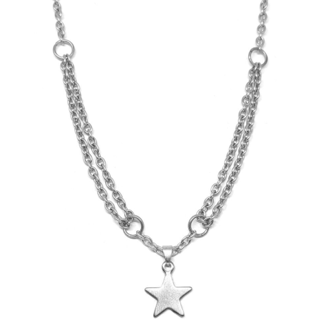 1 kép Ezüst színű nemesacél Csillag medál kétsoros nyaklánccal