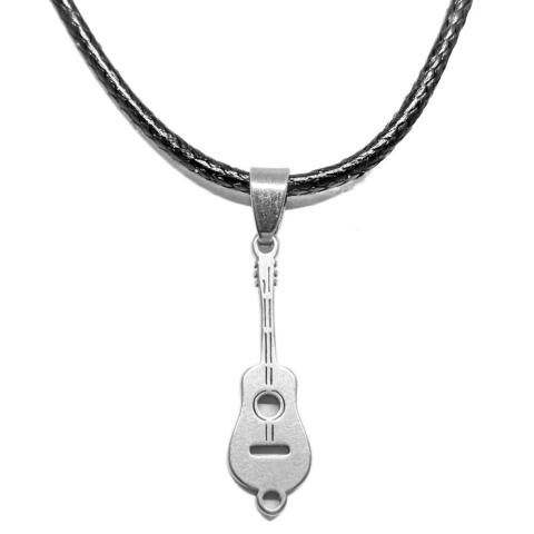 1 kép Ezüst színű nemesacél Hegedű medál fekete bőr lánccal