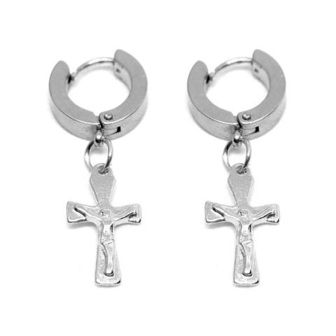 1 kép Ezüst színű nemesacél kereszt (feszület) fülbevaló