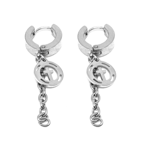 1 kép Ezüst színű nemesacél kereszt fülbevaló lánccal