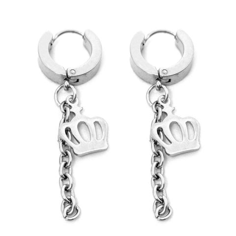 1 kép Ezüst színű nemesacél Korona fülbevaló lánccal