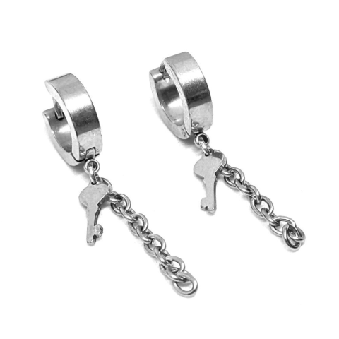 1 kép Ezüst színű nemesacél Kulcs fülbevaló lánccal