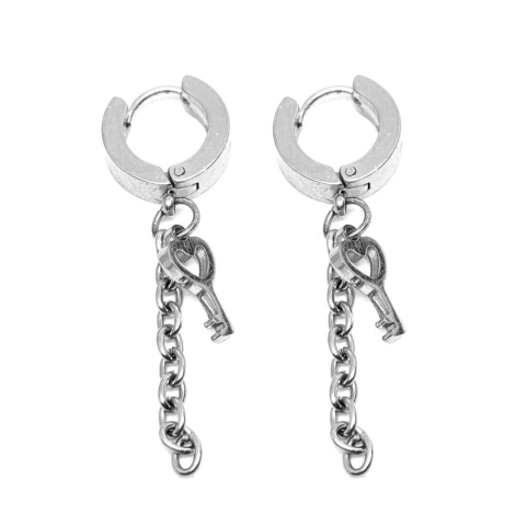 1 kép Ezüst színű nemesacél Szív Kulcs fülbevaló lánccal