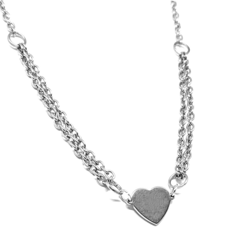 1 kép Ezüst színű nemesacél Szív medál kétsoros nyaklánccal