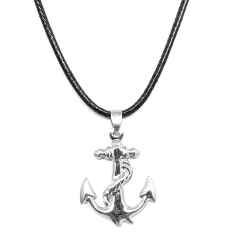 1 kép Ezüst színű nemesacél Vasmacska (horgony) medál fekete bőr nyaklánccal