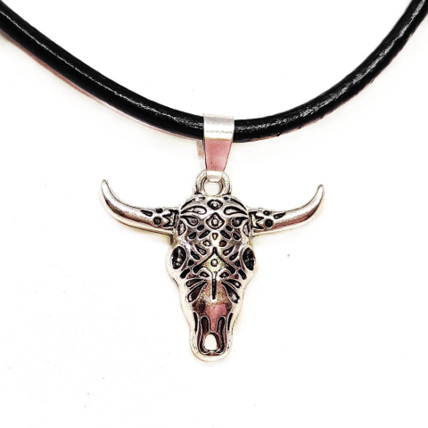 1 kép Ezüst színű punk Állatkoponya medál fekete bőr nyaklánccal