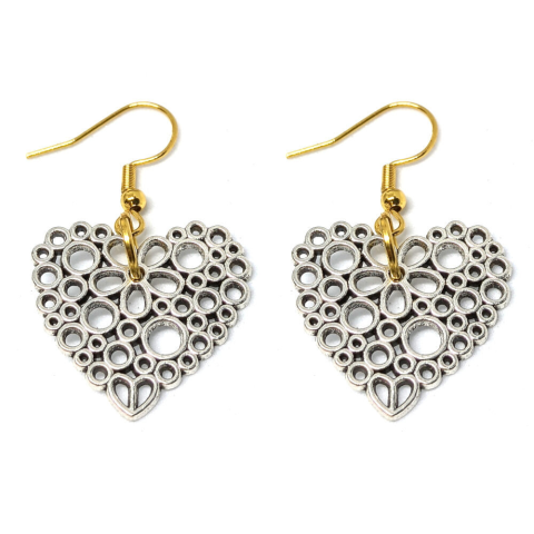 1 kép Ezüst színű Virágos Szív fülbevaló arany színű akasztóval