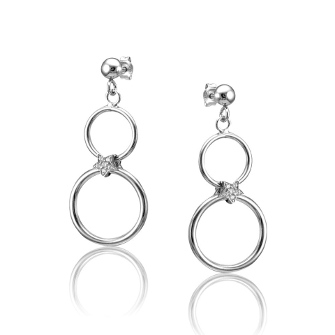 Elegáns ezüst Toscana fülbevaló - kettős karika és csillagdizájn ✨ Ez a gyönyörű ezüst fülbevaló tökéletes választás minden alkalomra. A kettős karika dizájn modern és elegáns, a közepén elhelyezkedő apró cirkóniákkal díszített csillag pedig extra c...
