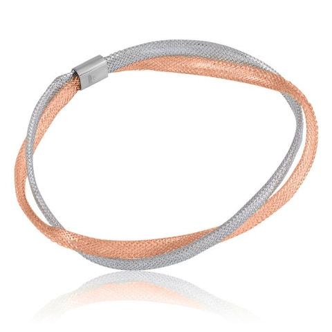 Ezüst szálakból készült, rugalmas ezüst ékszer, rozé arannyal