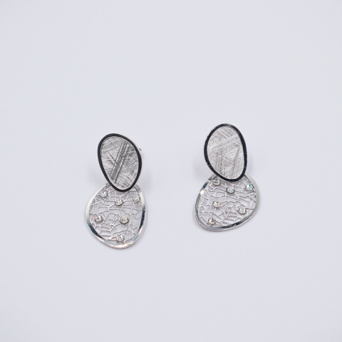 Ezüst kettős fülbevaló: Elegáns és modern dizájn ✨ Ez az elegáns ezüst fülbevaló tökéletes választás különleges alkalmakra és mindennapi viseletre is. A matt, karcolt felület és a csillogó kövek egyedi megjelenést kölcsönöznek. Jellemzők: Két részb...