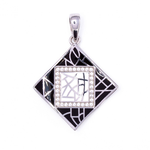 1 kép Ezüst zománcozott cirkónia köves medál "fek-feh.négyzet"