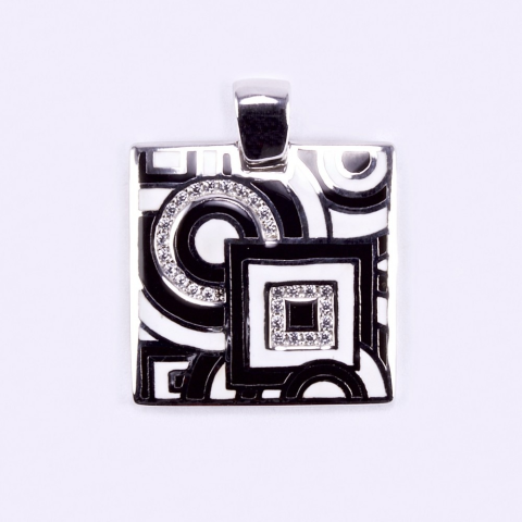 1 kép Ezüst zománcozott, cirkónia köves medál "fekete-fehér"
