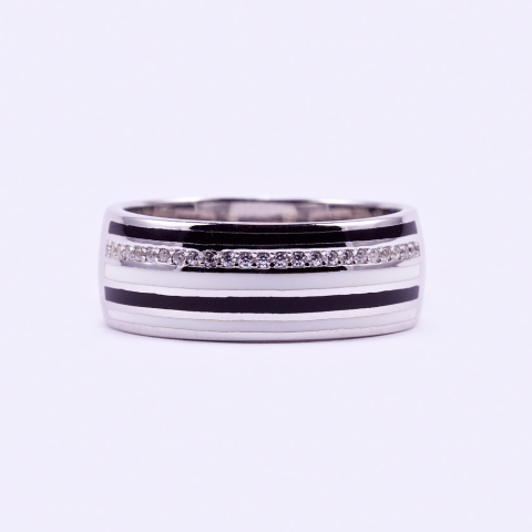 1 kép Ezüst zománcozott és cirkónia köves gyűrű "csíkos-fek-feh"