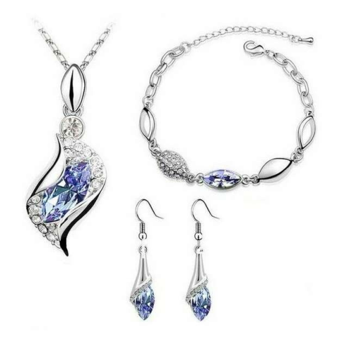 Ezüsttel bevont 3 részes ékszerszett halványlila és áttetsző kristályokkal (0176.) ékszer szett 1 kép
