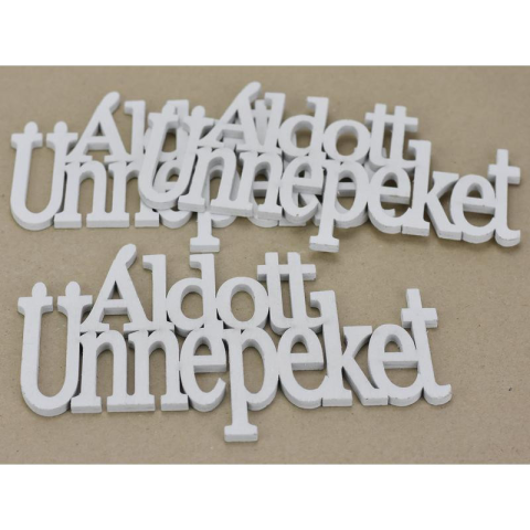 1 kép Fa - Áldott Ünnepeket felirat koszorúra fehér 21cm 3db/csomag