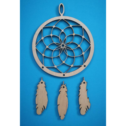 1 kép Fa álomfogó, 3 darab fa tollpihe