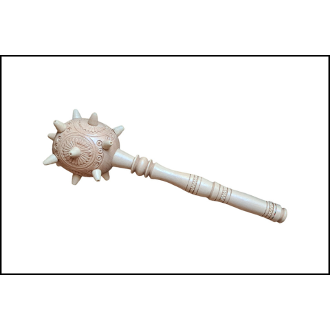 Fa buzogány Anyaga: Fa Méretek: Hosszúság: 49 cm Fej átmérője: 13,5 cm Nyél átmérője: 3 cm Tisztítása: száraz törlőkendővel Ajánlott korosztály: 7 éves kortól