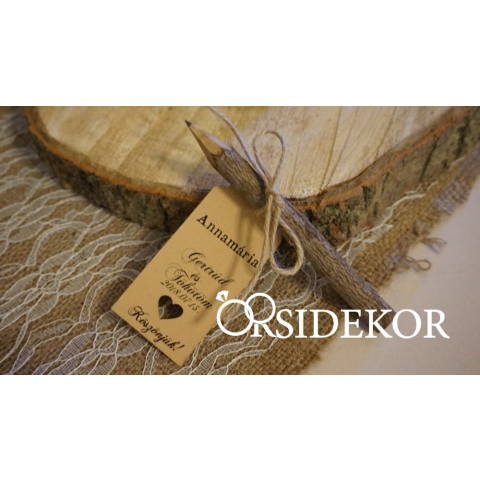 Fa ceruza kísérőcédulával Nem csak a gyerekek fognak örülni ennek a fatörzsre emlékeztető ceruza köszönetajándéknak. Ha természetességre törekszel az esküvődön is, remek választás lehet. Akár ültetőkártyaként is kérheted! Spárga helyett választhatsz ho