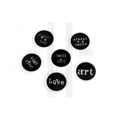 Fa dekorációs gomb feliratokkal - 10 db/csomag dekorációs kellék 1 kép