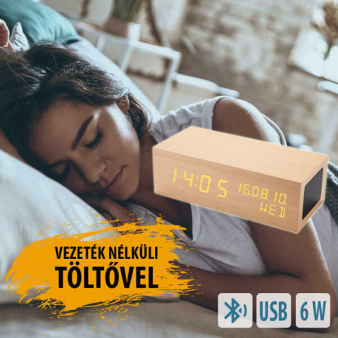 Ez az óra a hagyományos rendeltetésén (idő, ébresztés) kívül még számos más funkcióval rendelkezik. Ezek közé tartozik a belső hőmérséklet kijelzése, a vezeték nélküli töltés támogatása, valamint a sztereó Bluetooth hangfalak. Így az idő kijelzésén kívül kényelmesen töltheted a mobilod, használhatod kihangosítóként vagy zenehallgatásra. A készülék hangvezérléssel is működik, így ha az éjjeliszekrénye