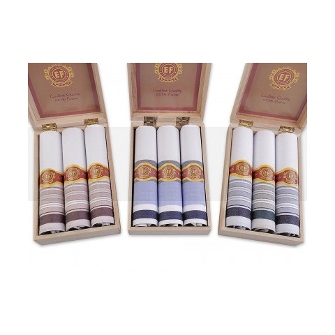 Az elegá,ns fé,rfizsebkendő ,kivá,ló, ajá,ndé,k. ,Fa dobozban vannak elhelyezve. ,100 % pamubó,l ké,szü,lt.A zsebkendők né,gyszö,g alakú,ak, mé,retü,k 43 x 43 cm. A dobozban 3 db zsebkendő van.A ké,pen lá,tható, szí,nek kö,zü,l az é,ppen raktá,ron lé,vőt tudjuk kü,ldeni vilá,gos alapszí,nben.A zsebkendők ,100% pamutbó,l ,k&