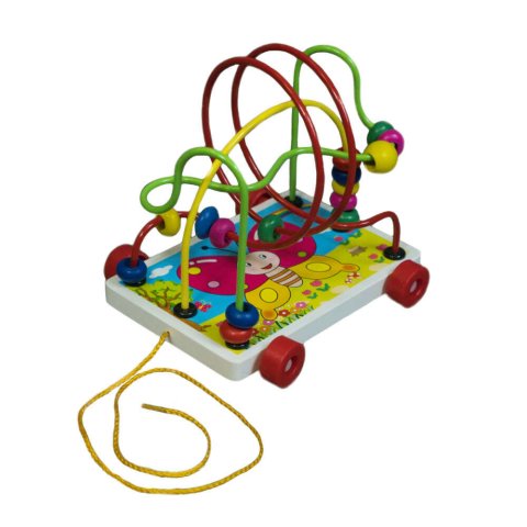 1 kép Fa drótpályás, ügyességi játék, húzható 17x17 cm dob.
