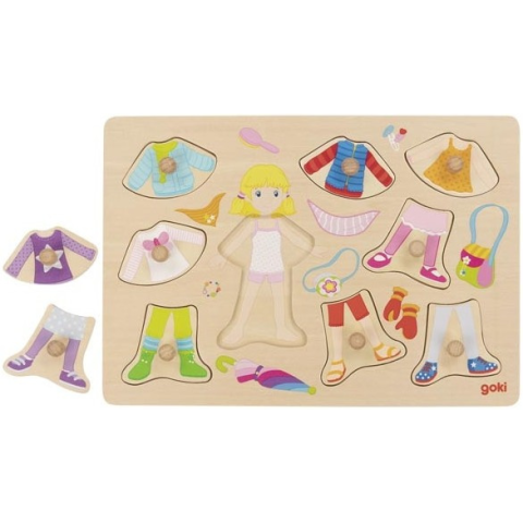 1 kép Fa fogós kirakó - Öltöztethető kislány