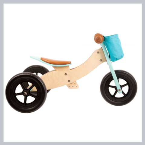 2 az 1-ben járgány, fa tricikli, majd futóbicikli egyben - kék.