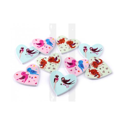 Fa gyöngy / szív dísz - 10 db gyöngy 1 kép