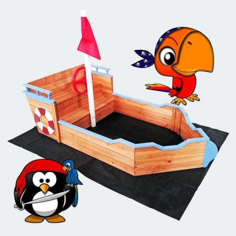 Fa Hajó Homokozó Zászlórúddal: Kalózkaland a Kertben 🏴☠️ Készülj fel a végtelen homokozós kalandra ezzel a gyönyörű fa hajó homokozóval! A kicsik imádni fogják a hajó formáját, a zászlórudat és a kormánykereket. A beépített pad extra kényelmet biz...