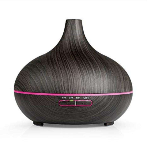 Fa hatású Aroma Diffúzor 7 színű LED fénnyel, Sötétbarna illóolaj párologtató 1 kép