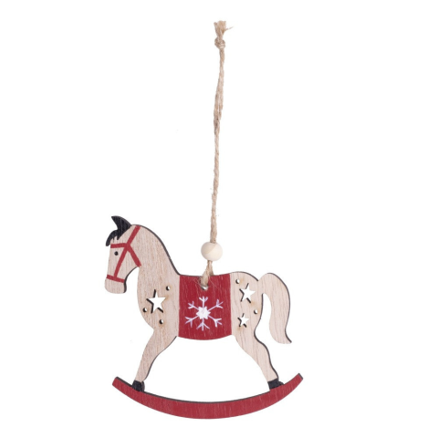 Fa hintaló fehér-piros akasztós 9cm dekorációs kellék 1 kép