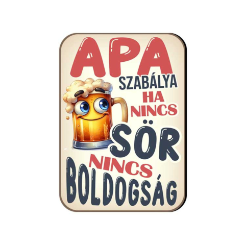 1 kép Fa hűtőmágnes, Apa szabálya, ha nincs sör, nincs boldogság