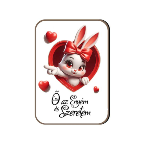 1 kép Fa hűtőmágnes, Ő az enyém, lány nyuszi